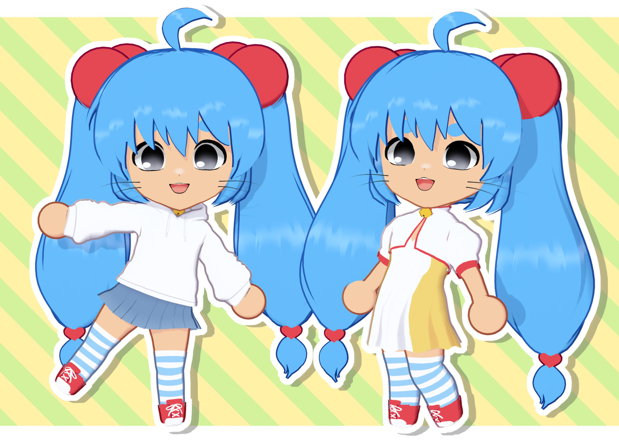 Outfit with files of top piece, bottom piece, dress, socks/tights, shoes, accesories, underwear, etc. + Hairstyle with files of hair, textures needed and physicsFile type: png | vroid | vroidcustomitem